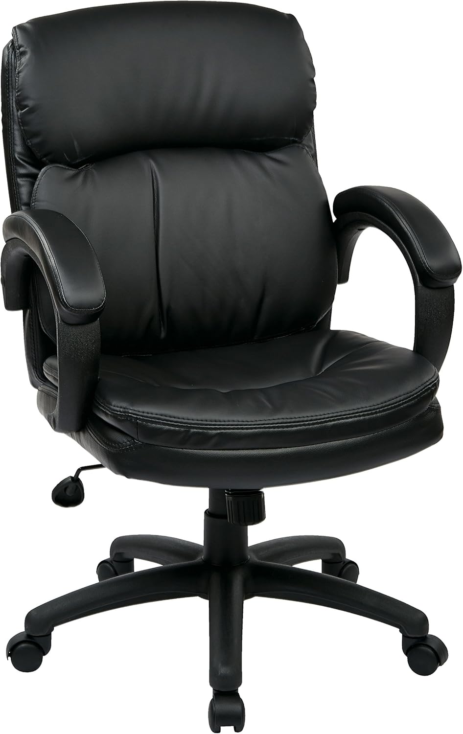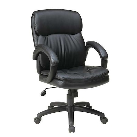 Office Star Mid Back Thick Padded Contour Seat and Back with Padded Armrests Black Eco Leather, Managers Chair