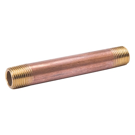 Nipple, Threaded on Both Ends, Pipe Schedule 40, Pipe Size - Nominal 2 1/2 in, Overall Pipe Length 11 in, Material - Pipe Red Brass, Pipe Thread Type MNPT x MNPT, Outside Dia. 2 7/8 in, Temp. Range - 20 To 400 Degrees F, Pressure (PSI) 125, Standards ANSI B1.20.1, ASTM B687