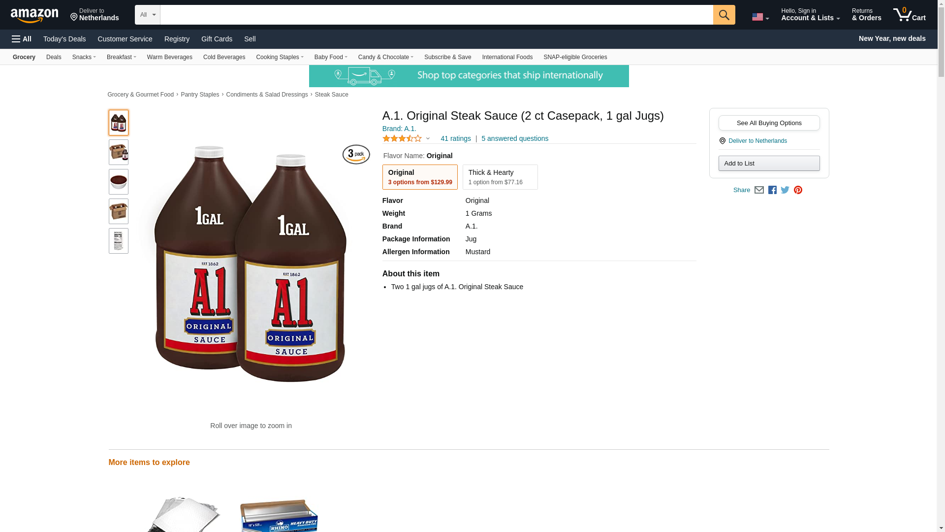 - A1 ORIGINAL SAUCE: Two 1 gal jugs of A.1. Original Steak Sauce