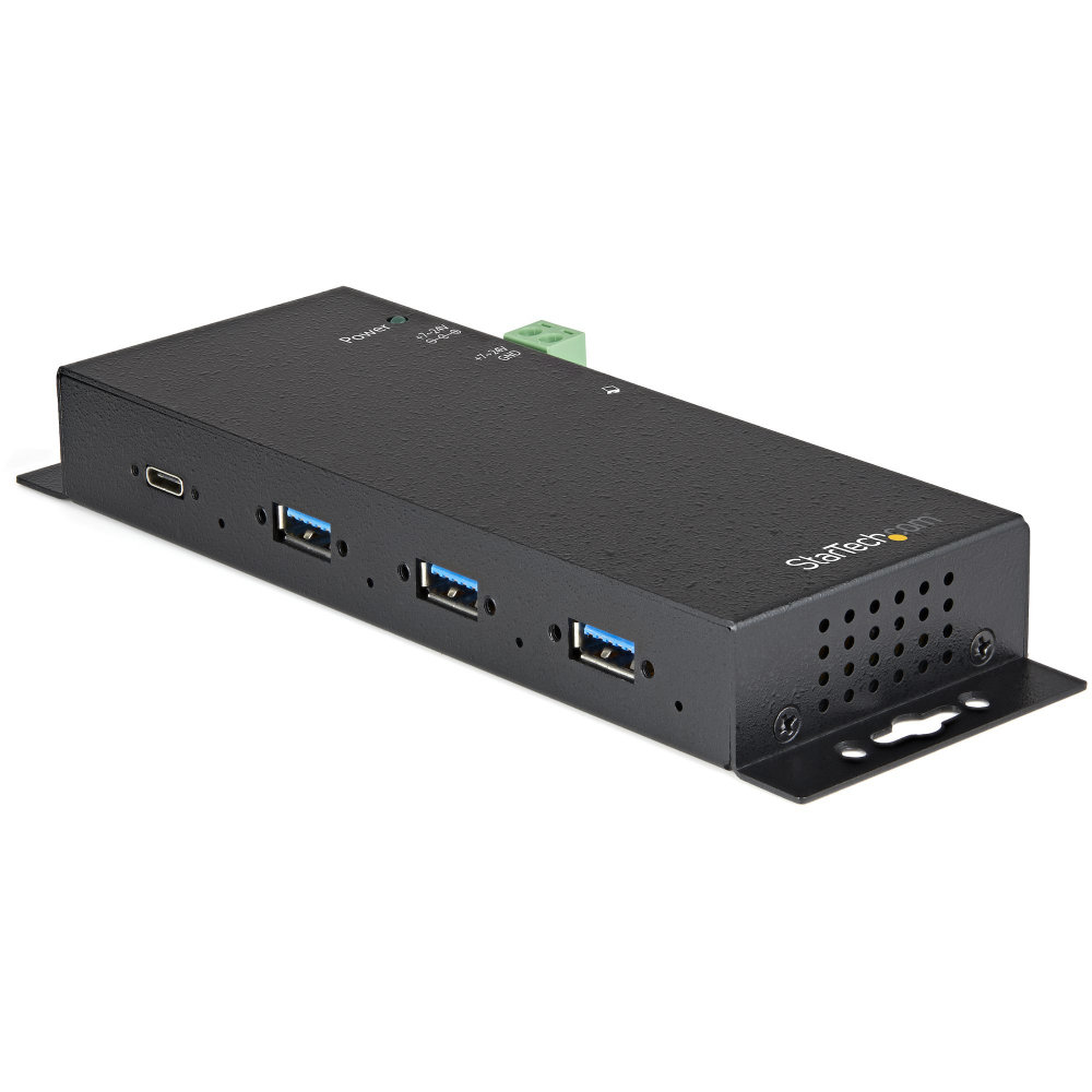 StarTech.com 4 Port USB C Hub 10Gbps - Metal Industrial USB Type-C Hub w/ 3xUSB-A & 1xUSB-C - ESD & Surge Protection - USB-C or USB-A Host - Self-Powered Mountable USB 3.2/3.1 Gen 2 Hub (HB31C3A1CME)