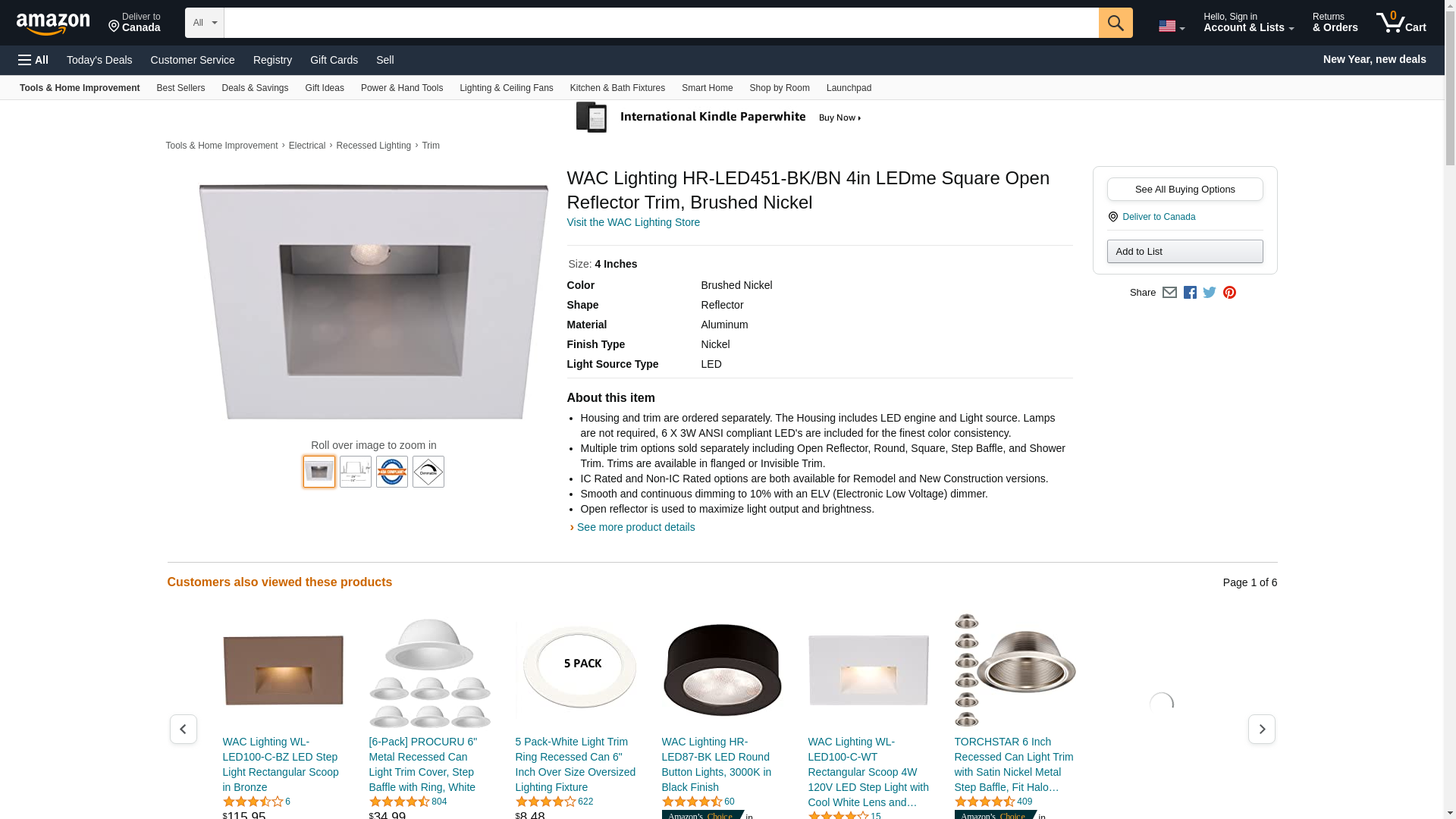WAC Lighting HR-LED451-BK/BN 4in LEDme Square Open Reflector Trim, Brushed Nickel
