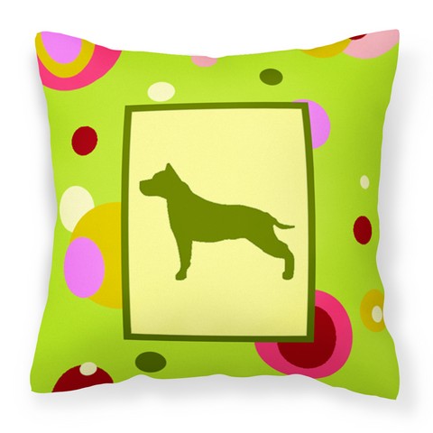 Carolines Treasures CK1007PW1414 Lime Green Dots Staffie Fabric Decorative Pillow, 14 x 3 x 14 in.