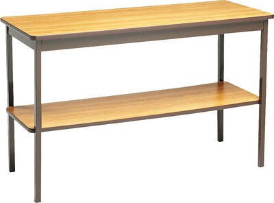 Barricks Utility Table with Bottom Shelf, Rectangular, 48w x 18d x 30h, Oak/Brown