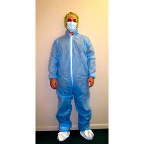 SMS Coverall, Elastic Wrists & Ankles, Zipper Front, Single Collar, Blue, M, 25/Case