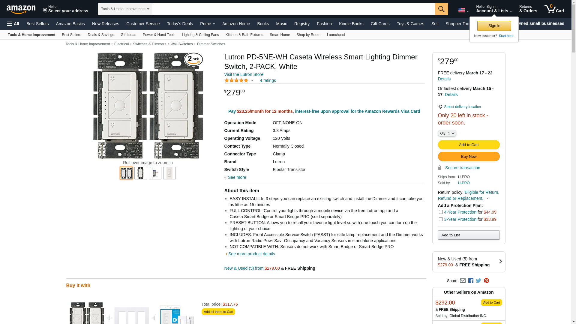 ![]() electricbargainstores.com | LUTRON-PD-5NE-WH | 1 | Usually Ships in 3-5 business days. Urgent Project | 1 | |