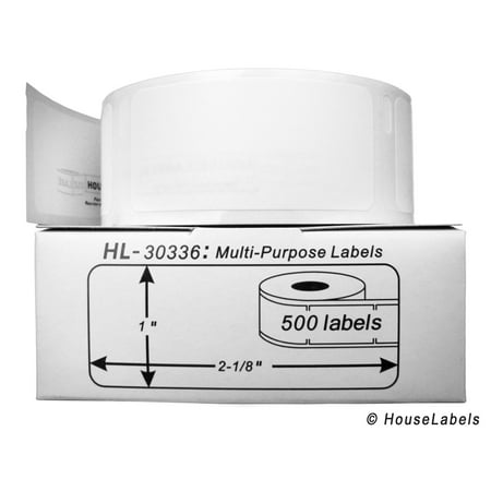 <ul> <li>Buy this genuine HouseLabels' product with confidence -- a 100% guarantee of satisfaction is provided. This product is genuine ONLY if the HouseLabels' logo is behind the release liner of each label AND each roll is packed in an individual mini-carton, with the HouseLabels' logo, to protect each roll from sunlight and scuffing. Each white label is blank and ready for your printing.</li> <li>1" x 2-1/8" | Rectangle | White | Direct Thermal | BPA Free | Permanent-Adhesive | 500 Labels per Roll</li> <li>These multipurpose labels can be used for a number of different office and home labeling applications, including barcodes (perfect for Amazon FBA item labels), return address labels and file folders.</li> <li>DYMO Printers: 300, 310, 315, 320, 330, 400, 400 Duo, 400 Twin Turbo, 450, 450 Duo, 450 Turbo, 450 Twin Turbo, 4XL, EL40, EL60, SE300, SE450 CoStar LabelWriters: XL, XL+, BC, BC+, TURBO, SE200, SE250, ACII 200 / ASCII 250</li> <li>All labels sold by HouseLabels for use in DYMO LabelWriters are tested to ensure that they fall within DYMO specifications Labels are smooth and bright white for professional results Labels are smudge-proof as well as water and oil resistant All temperature, strong permanent adhesive is excellent for all general purpose labeling applications Each roll is individually packed into a protective black polybag and then placed in a mini-carton to protect it from dirt, sunlight and scuffing.</li> </ul> <br />We start with superior raw materials consisting of: (a) high quality direct thermal paper (80G/M2), (b) permanent acrylic adhesive, (c) white glassine release paper (60G/M2), (d) superb whiteness, and (e) water, grease and rub resistant paper. Labels are produced using the latest technology and undergo numerous quality control checks. Our certifications include ISO 9000/9001/9004/19011: 2000 and others. HouseLabels meets or exceeds OEM manufacturer specifications. Our labels will not damage your Dymo print head. We use state of the art glue technologies which conform to our stringent standards. Our labels are produced in a clean environment and immediately packed first into a protective polybag and then into an individual mini-carton to protect it from dirt, sunlight and scuffing. <br /> <br /> <b>All HouseLabels products are BPA Free.</b> BPA (bisphenol A) is an industrial chemical that has been used since the 1960s. Certain thermal paper may contain BPA. The National Toxicology Program at the Department of Health and Human Services says it has "some concern" about the possible health effects of BPA on the brain, behavior and prostate gland of fetuses, infants and children. <br /> <br /> <b>Notice:</b> HouseLabels does not sell DYMO-branded labels. "DYMO", "LabelWriter" and all other DYMO-branded product names and SKU trademarks are trademarks of DYMO Corporation. DYMO Corporation does not sponsor or endorse any products made or sold by HouseLabels.