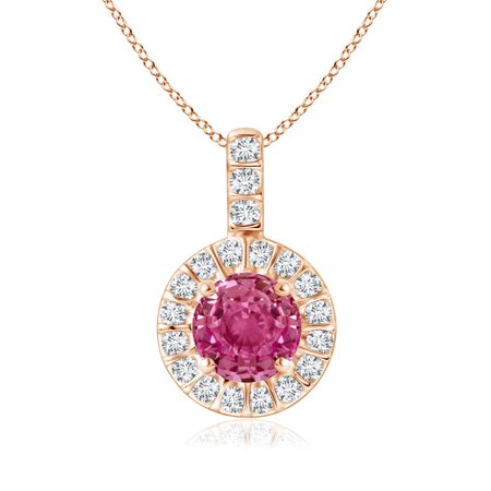<ul> <li>Vintage Pink Sapphire Halo Pendant with Diamond Bail in 14K Rose Gold (6mm Pink Sapphire)</li> <li>Approximate Carat Total Weight 1.23 ct</li> <li>18 inch 14K Rose Gold Chain Shipped Free With Pendant</li> <li>Pink Sapphires are Heat treated for enhanced brilliance and lustre.</li> <li>Free Certificate of Authenticity and 30-Days Easy Returns.</li> <li>*Get a FREE Gemstone Pendant in Silver w/o Chain</li> </ul>