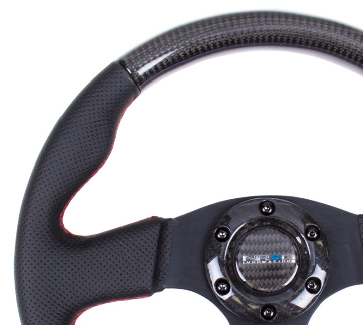 NRG Innovations ST-310CFRS Carbon Fiber Steering Wheel with Red Stitching (315mm)