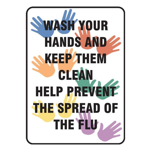 Accuform Safety Sign: Wash Your Hands And Keep Them Clean Help Prevent The Spread Of The Flu - Aluma-Lite (14" x 10") MRST598XL - Filmtools