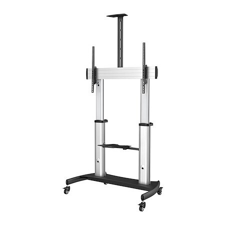 StarTech.com Mobile TV Stand, Heavy Duty TV Cart for 60-100" Display (100kg/220lb), Height Adjustable Rolling Flat Screen Floor Standing on Wheels, Universal Television Mount w/Shelves - W/ 2 equipment shelves cart - for flat panel - black, silver | Grand & Toy