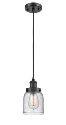 INNOVATIONS LIGHTING 916-1P-BK-G54 BALLSTON SMALL BELL 1 LIGHT 5 INCH SEEDY GLASS MINI PENDANT, MATTE BLACK,...