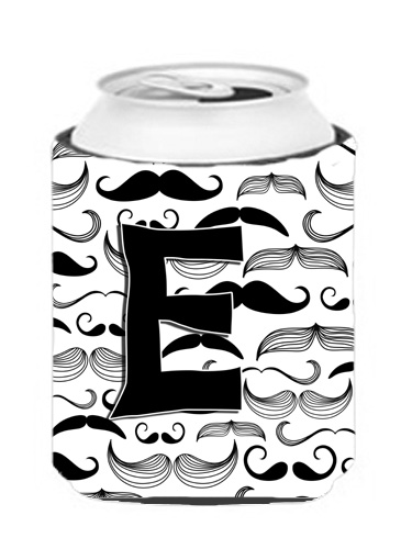 Caroline's Treasures CJ2009-ECC Letter E Moustache Initial Can or Bottle Hugger Cooler Washable Drink Sleeve Collapsible Beverage Insulated Holder, Can Hugger, Multicolor