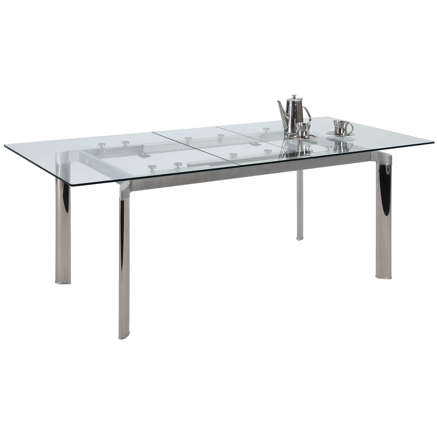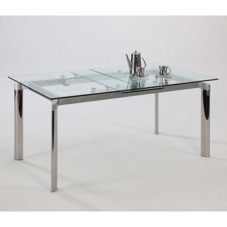Chintaly Imports Pop-up Extension Glass Dining Table, Stainless Steel/Clear