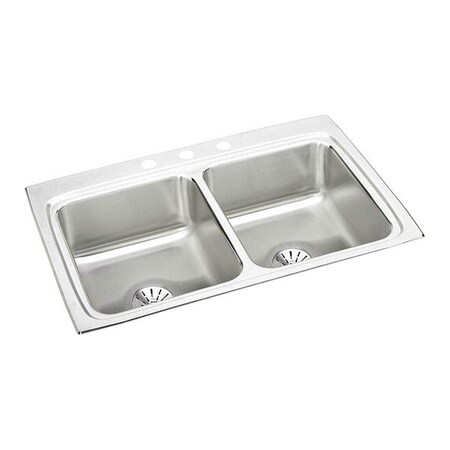 Elkay LR3322PD1 Lustertone Classic Equal Double Bowl Drop-in Stainless Steel Sink with Perfect Drain