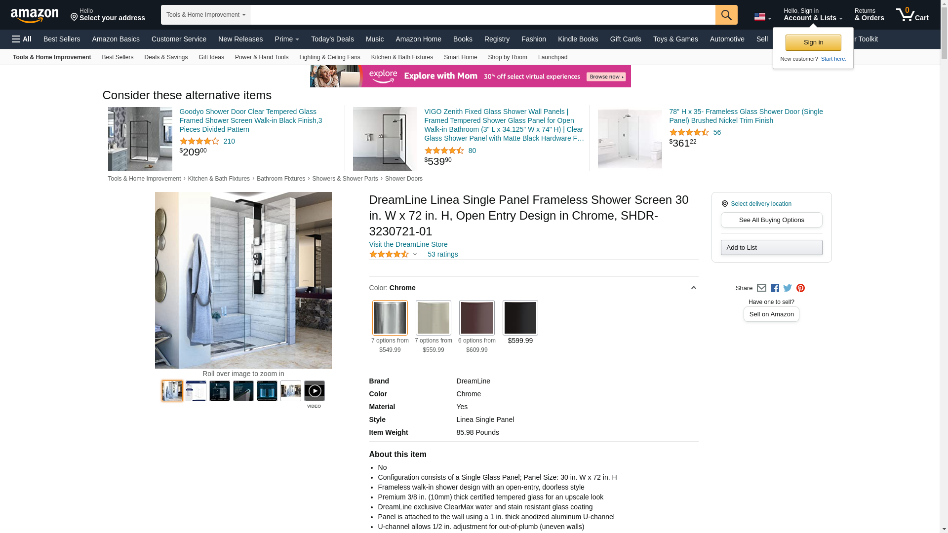 | Feature | 30 in. x 72 in.; Configuration consists of a Single Glass Panel |