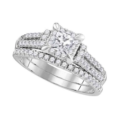 <p><span style="font-size:16px;"><b><u>Description</u></b><br /></span></p> <p><span style="font-size: 14px;">14kt White Gold Womens Princess Diamond Halo Bridal Wedding Engagement Ring Band Set 1.00 Cttw</span></p> <br /> <p><span style="font-size:16px"><u><b>Gemstone Details</b></u></span></p> <p><span style="font-size:14px">1.00 Carats total weight --- 1/3 carat center solitaire<br /><br />All diamonds are natural and conflict-free in origin<br /><br /></span></p> <ul type="square"> <b>Princess Center Diamond</b> <br /> <li>1/3 ct.t.w.</li> <li>I1-I2 clarity</li> <li>H-I color</li> <li>4-prong setting</li> </ul> <br /> <ul> <b>Round Diamond</b> <br /> <li>5/8 ct.t.w.</li> <li>I1-I2 clarity</li> <li>H-I color</li> <li>Prong setting</li> </ul> <br /> <p><span style="font-size:16px"><u><b>Specifications</b></u><br /></span></p> <p><span style="font-size:14px">14kt White Gold<br />4.15 grams (approximately)<br />Ring size selectable</span></p> <p><span style="font-size:11px">Combined diamond weight of 1.00 carats total weight represents a range of 0.95 - 1.05 cts. t.w.</span></p>