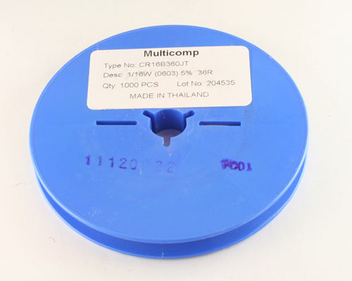 As an Amazon Associate, we earn from qualifying purchases. CR16B360JT MULTICOMP resistor 36 Ohm 0.062W 5% MULTICOMP . CR16B360JT Gallery Attributes Brand name, Manufacturer name, ManufacturerMULTICOMP Attribute0036 ohm Attribute015% Attribute020.062 w Attribute03smd Attribute04reel Attribute051000 AttributeKey00resistance AttributeKey01resistance tolerance AttributeKey02power rating AttributeKey03terminal type AttributeKey04package AttributeKey05item per pack Extra Product NameCR16B360JT MULTICOMP resistor 36 Ohm 0.062W 5% keywordsDiscount Electronic Components, CR16B360JT MULTICOMP resistor 36 Ohm 0.062W 5% 2021007601, not only RESISTOR , electronic parts, electronic components moq, multiple, tierMinQty1100 MPNCR16B360JT qtyInStock-2 qtySourceFieldMap SKU2021007601 snippetCR16B360JT MULTICOMP resistor 36 Ohm 0.062W 5% 2021007601. Thousands of discounted electronic components in stock. No lead time, ship out right away! Electronic parts, tedss.com your source for electronic components. tierPrice10.1000 Distributor offers SellerSKUMOQIn stockMultiplePrices Tedss2021007601100-2100100 @ $0.10