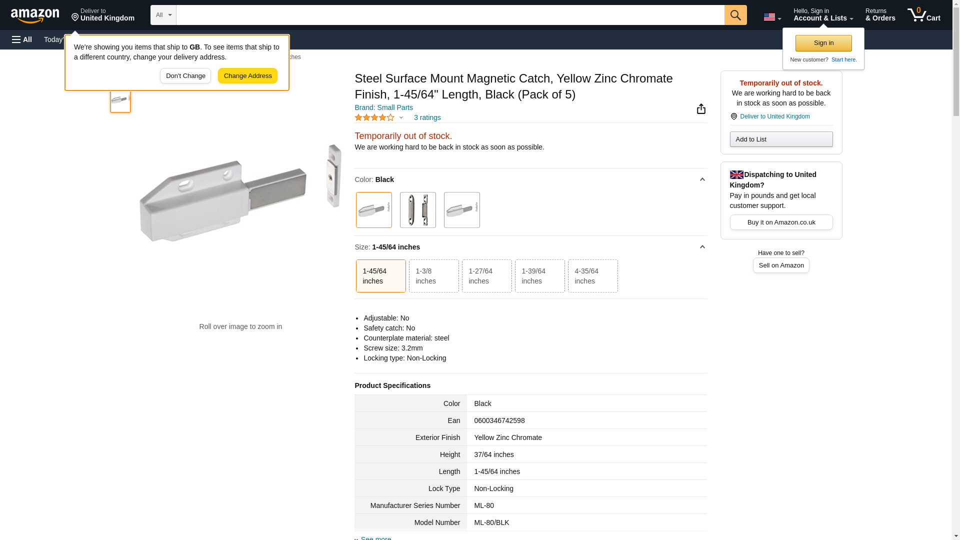 Steel Surface Mount Magnetic Catch, Yellow Zinc Chromate Finish, 1-45/64" Length, Black (Pack of 5)