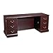 18th century elegance, 21st century engineering. Mirror-finish, high-pressure laminate top with traditional edge detail. Woodgrain laminate end panels and drawer fronts. Drawers operate on ball bearing suspensions file drawers extend fully and accept letter or legal size hanging files, box drawers extend three-quarters. Antique brass-plated hardware. Full-height modesty panel.