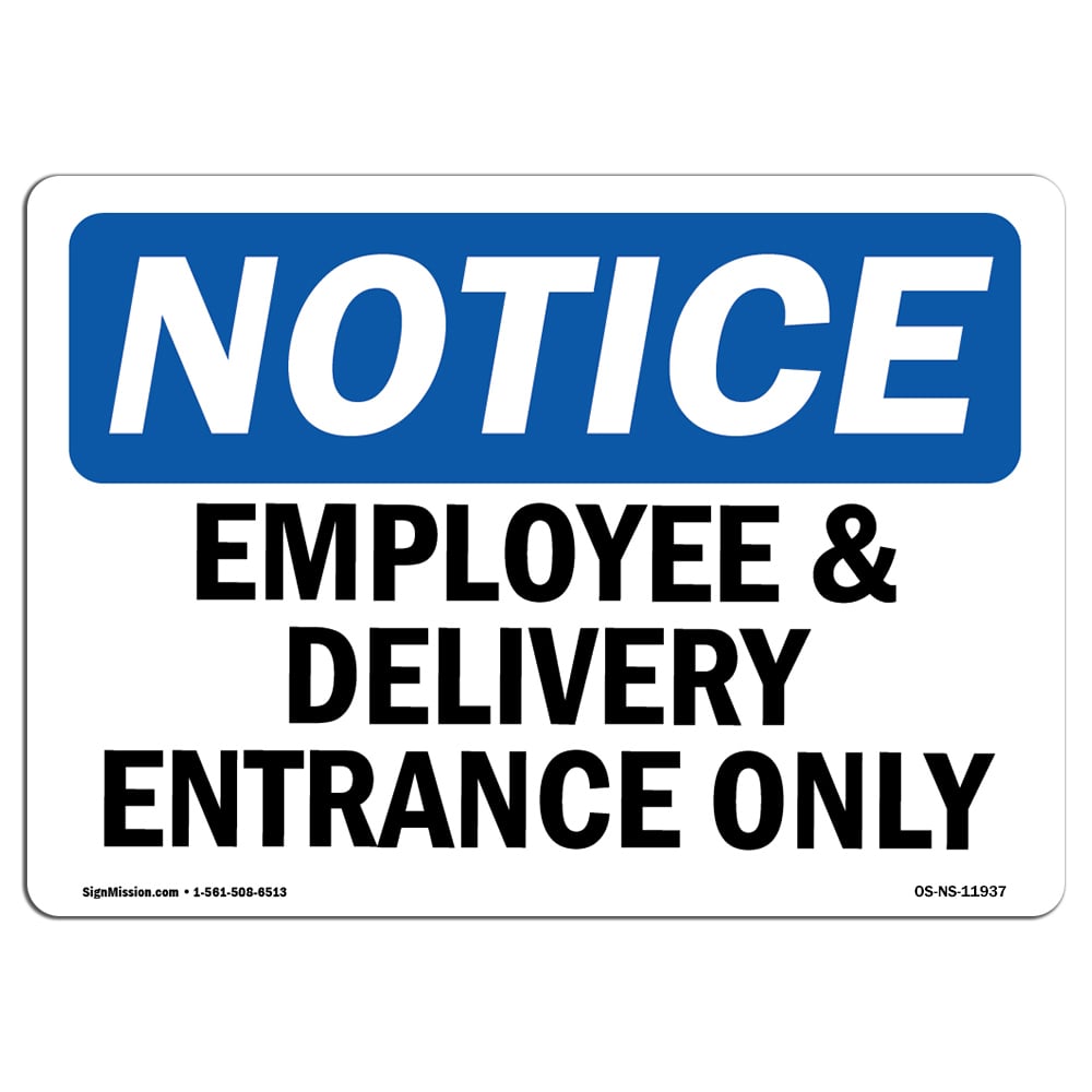 SignMission OS-NS-D-1824-L-11937 Notice Employee & Delivery Entrance Only OSHA Sign