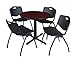 Cain 30" Round Breakroom Table- Mahogany & 4 'M' Stack Chairs- Black