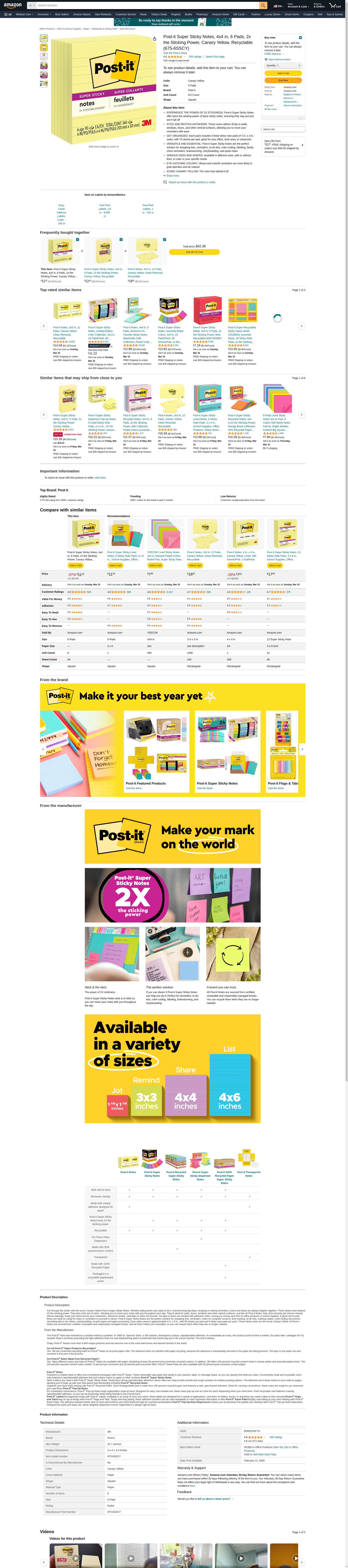 Buy 3m 6756SSCY As low as $10.89 in bulk In stock Post-it Super Sticky Note - Self-adhesive - 4" X 4" - Yellow - Paper - 6 / Pack (6756SSCY)