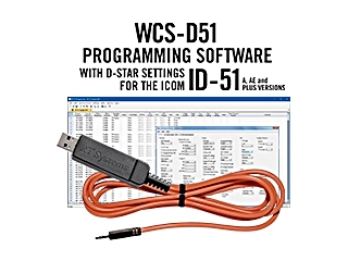The WCS-D51 software allows you to program memory channels and menu settings of the radio. WCS-D51 works with authentic versions of this radio worldwide including the ID-51A and ID-51E. The original ID-51 and the new ID-51 Anniversary Edition radios now use the same software. The USB-RTS05 cable programs all versions of the ID-51 through the 2.5mm data port. It works with a limited few other Icom radios for programming with the RT Systems software. It, however, works both for programming the radio with the RT Systems software AND as a cable for digital data using other programs such as D-Rats for the ID-51 and some other Icom D-Star radios (handhelds and mobiles).