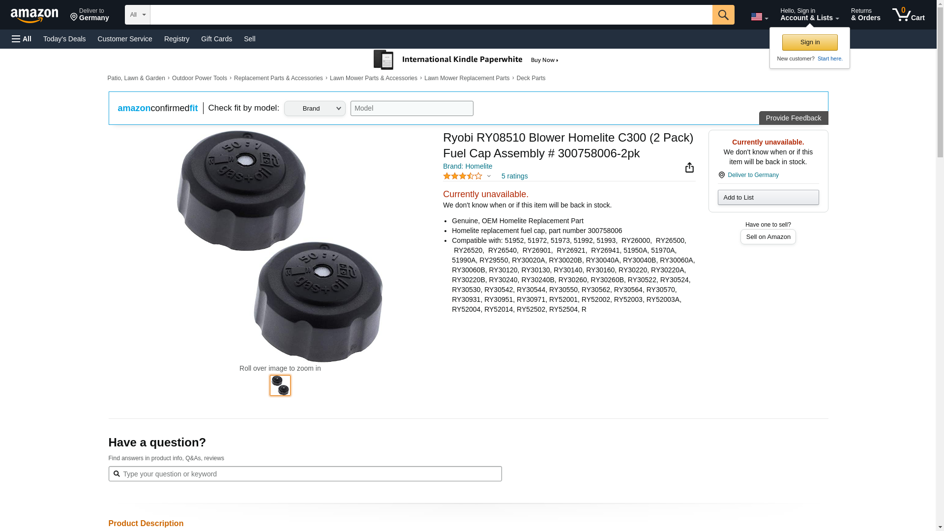 Homelite/Ryobi - Fuel Cap Assembly - 300758006