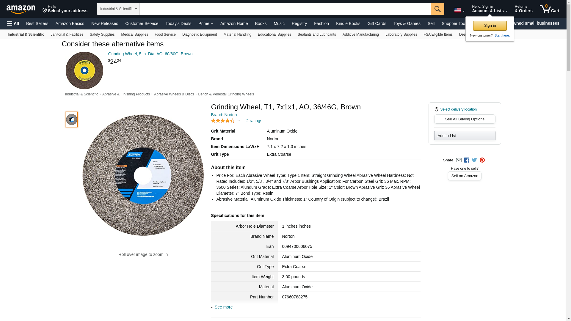 | Feature | Price For: Each Abrasive Wheel Type: Type 1 Item: Straight Grinding Wheel Abrasive Wheel Hardness: Not Rated Includes: 1/2", 5/8", 3/4" and 7/8" Arbor Bushings Application: For Carbon Steel Grit: 36 Max. RPM: 3600 Series: Alundum Grade: Extra Coarse Arbor Hole Size: 1" Color: Brown Abrasive Grit: 36 Abrasive Wheel Diameter: 7" Bond Type: Resin |