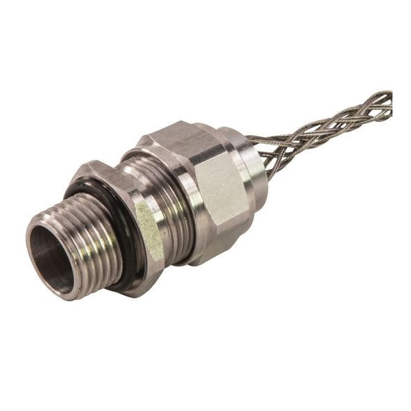 Cord Connector, SS, 1-1/4" NPT, cable range .875 - 1.00 with mesh. Remke Part Number: RSSS-416-E UPC Code (785411816784)