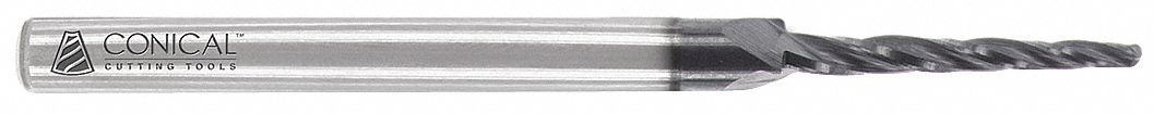 Conical Tool Company CM-AX-023-BE 0.5° Carbide Miniature Tapered End Mill - 3 Flute x 5/64'' Tip x 0.0912'' Large Diameter x 1/8'' Shank x 3/4'' Length of Cut x 2 1/2'' Overall Length w/ Ball End