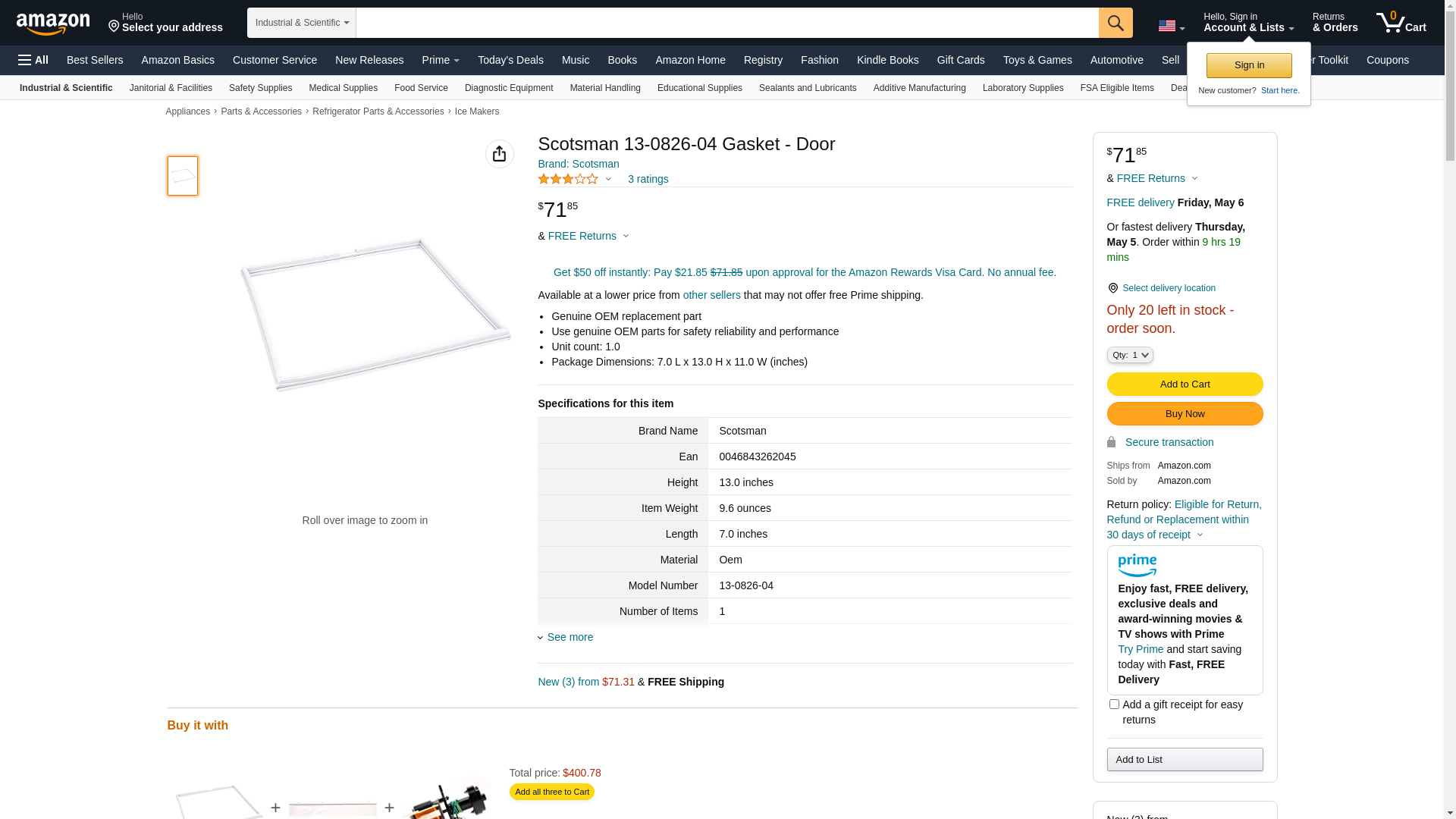 ![]() midwestapplianceparts.com | 13-0826-04-SCO-P | 1 | 1 | 1 @ $92.85 | |