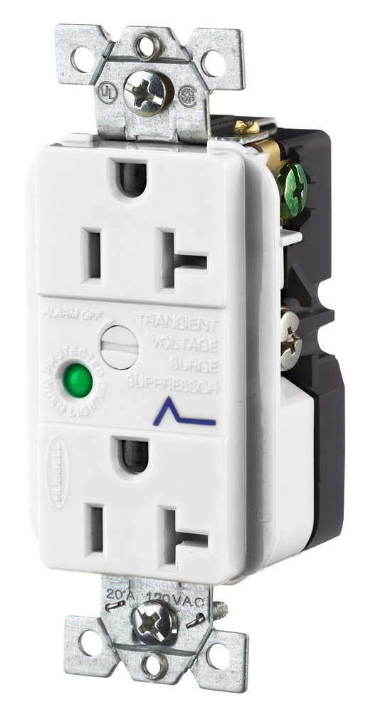 Surge Protective Devices, SPIKESHIELD TVSS Duplex Receptacle with Light and Alarm, 20A 125V, 5-20R, White