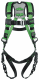 | Feature | Price For: Each Front D-Ring: No Shoulder Strap Buckles: Cam Subpelvic Strap: Yes Standards: ANSI, CSA, OSHA Includes: Integrated Shoulder Pads Item: Full Body Harness Color: Black/Green Tensile Strength: 6000 lb. Side D-Rings: No Hardware Material: Steel Harness Size: Universal Harness Application: Construction, Confined Space Weight Capacity: 400 lb. |