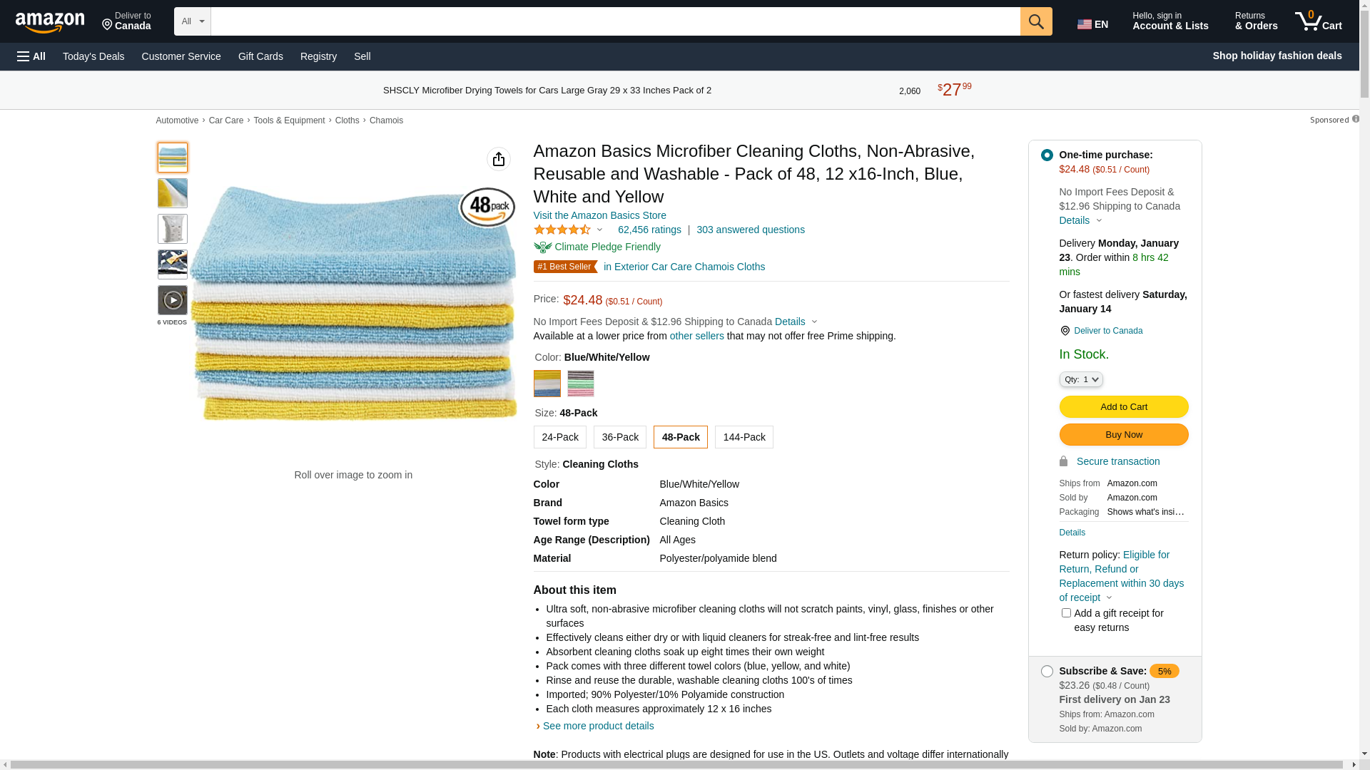 - Microfiber 16 x 12-inch cleaning cloth (48-pack) in Blue, White, and Yellow; ideal for cleaning cars, trucks, boats, and more