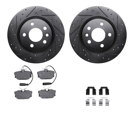 8512-74255, Rotors-Drilled and Slotted-Black w/ 5000 Advanced Brake Pads incl. Hardware, Zinc Coated