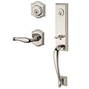 Reserve Del Mar Collection - Right Handed Double Cylinder Del Mar Handleset with Decorative Door Lever with Traditional Arch Rose in Polished Nickel by Baldwin Hardware - DC.DELXDEC.R.TAR.141 | MyKnobs