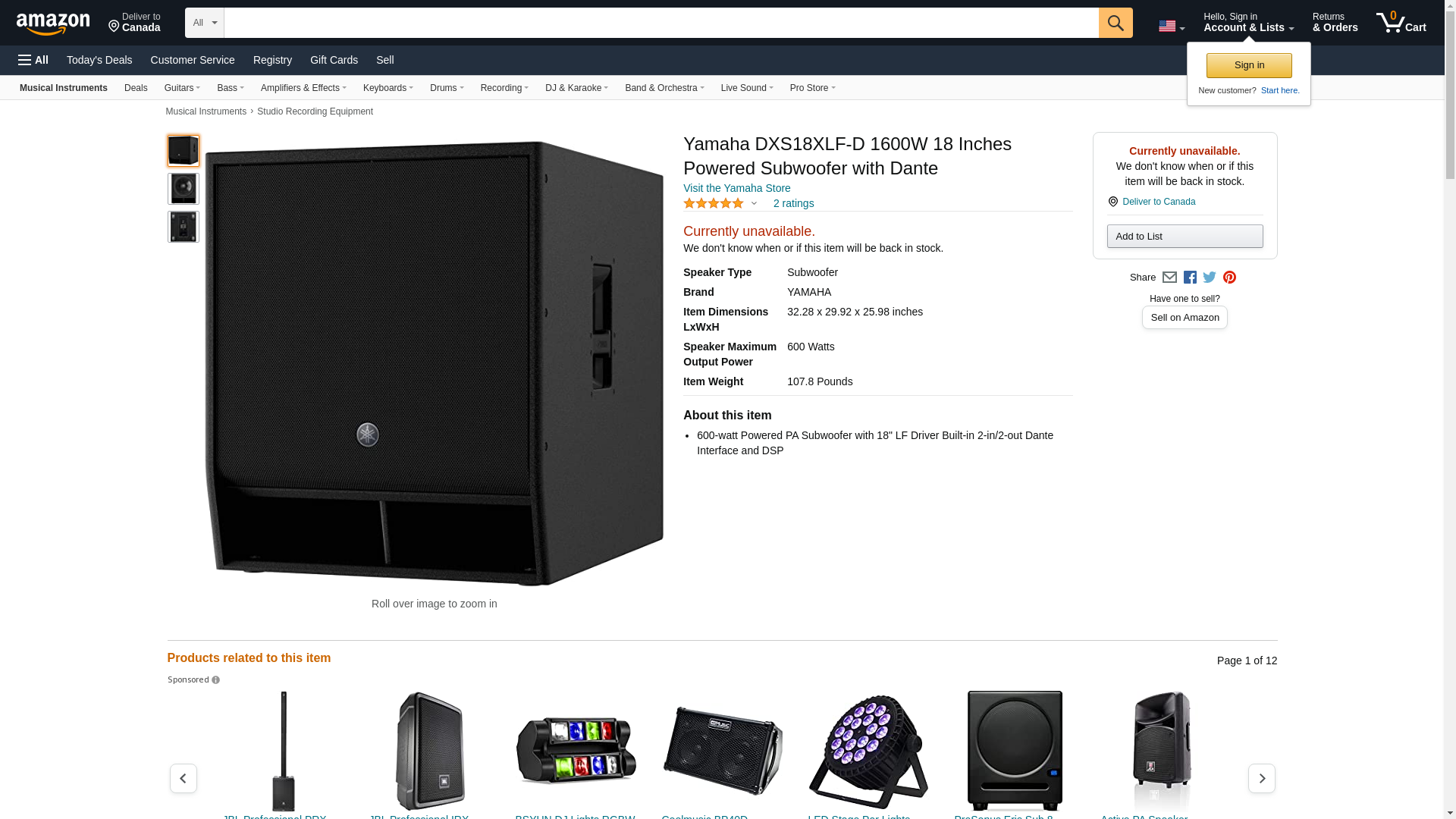 Buy the Yamaha DXS18XLF-D, 18" Powered Subwoofer with Dante, 1600W at Full Compass Systems. 0% Financing and Free Shipping on thousands of items!