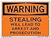 Vestil SI-W-27-C-AL-080 Sign-Warning-27 14.5X10.5 Aluminum .080, Stealing Will Lead to Arrest and Prosecution