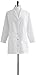 | Feature | White button-front lab coat with pencil divided left breast pocket, two lower pockets and princess-seamed back with one-piece back belt |