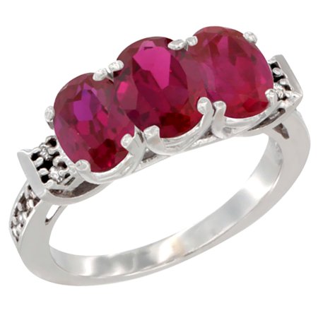 14K White Gold Enhanced Ruby Ring 3-Stone Oval 7x5 mm Diamond Accent, sizes 5 - 10