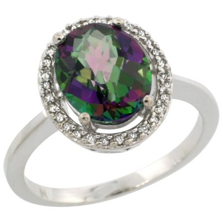 14K White Gold Natural Diamond Halo Mystic Topaz Engagement Ring Oval 10X8 mm, sizes 5-10