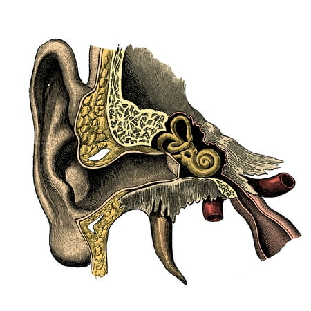 Science Source Stretched Canvas Art - Ear Anatomy - Medium 24 x 18 inch Wall Art Decor Size.