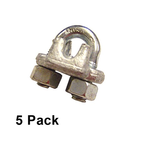 Galvanized Drop Forged Wire Rope Clips Meets Federal Specification FF-C-450 D, Type 1, Class 1Qty: 5 pack Diameter Size: 5/8"