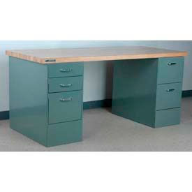 Stackbin Corporation Stackbin Workbench, Double Pedestal Bench A-23, Butcher Block Square Edge, 48"W X 36"D, Black