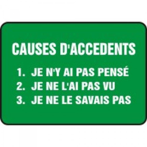 Causes D'Accidents 1. Je N'Y Ai Pas Pens 2. Je Ne L'Ai Pas Vu 3. Je Ne Le Savais Pas 7" x 10" - MCHS513XF - Jendco Safety Supply
