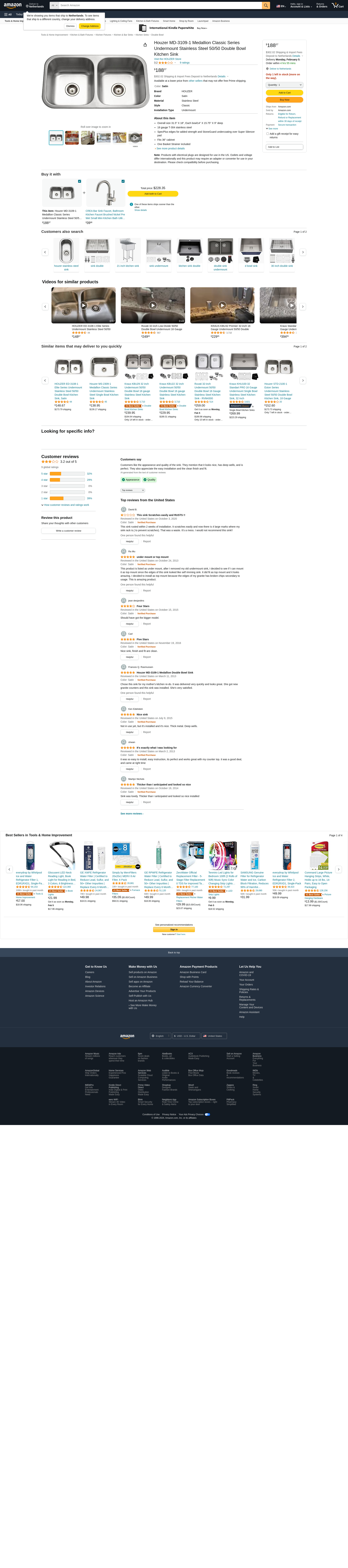 36" Undermount Double Basin Kitchen Sink from the Medallion Series HOUZER sink ware is made from durable Type 304 stainless steel, an optimal mix of nickel and chrome, making our sink ware exceptionally resistant to corrosion and stains for the life of the product. It provides a hygienic, scratchproof and resilient surface that requires minimal care and maintenance. Made of natural rubber, the Super-Silencer pad helps to reduce the noise of clattering dishes and running water. The Super-Silencer pad is a common feature to all HOUZER sinks. Each HOUZER sink ware is covered by a Lifetime Warranty to the original purchaser against any possible defects in materials and workmanship. We are not satisfied unless our customers are totally satisfied with our products. A marble powder based undercoating specially formulated and applied over super silencer pad. It reduces the noise of clattering dishes, running water and thermally insulates your sink keeping hot soaking water hot for longer. A beveled edge on the outer rim of the undermount sinks provide increased structural rigidity for the entire sink span, and creates a smooth and finished look. SpecPlus Edge is found only in HOUZER sinks. Premium grade T-304 stainless steel 9" depth 18 gauge StoneGuard undercoating over Super-Silencer pad SpecPlus edge Lustrous satin with highlighted rim Fits 36" sink base 3-1/2" drain opening Supplied with cutout template, fasteners and instructions Complies with ASME A112.19.3-2000, UPC Lifetime Limited Warranty Additional Information Houzer MD-3109-1 Specification Houzer MD-3109-1 Installation View Houzer Manufacturer Warranty Shop All Houzer Products Do not use prints made from this website to mark distances. Due to individual printers, dimensions on installation instructions may not print at an accurate scale.