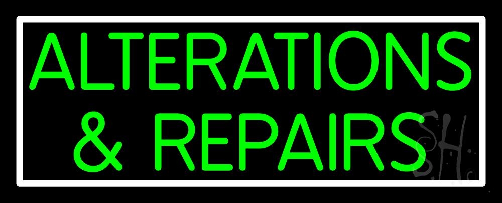 The Sign Store N105-1640 13 x 32 in. Green Alterations & Repairs Neon Sign - White & Green