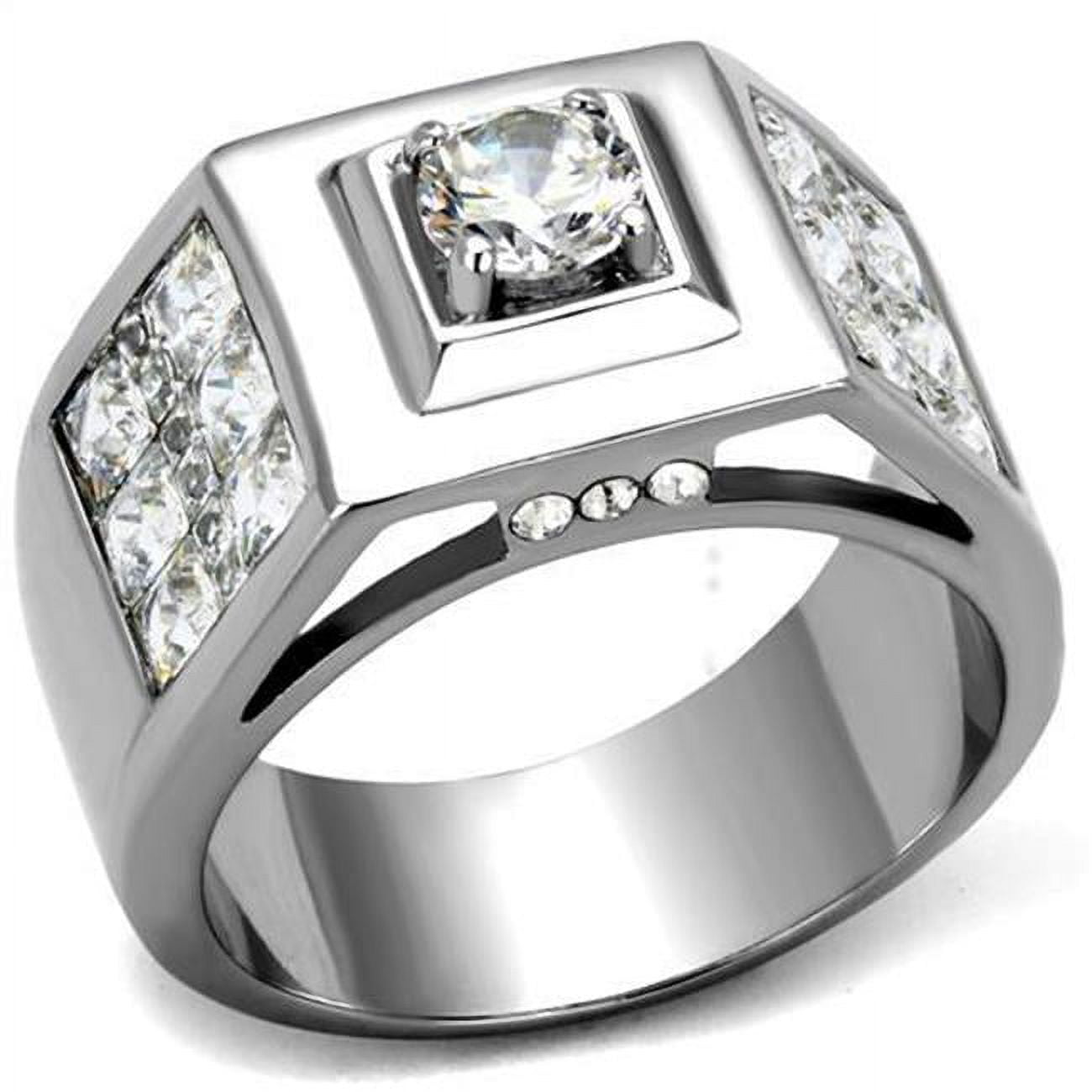 Alamode TK2220-11 Men High Polished Stainless Steel Ring with AAA Grade CZ in Clear - Size 11