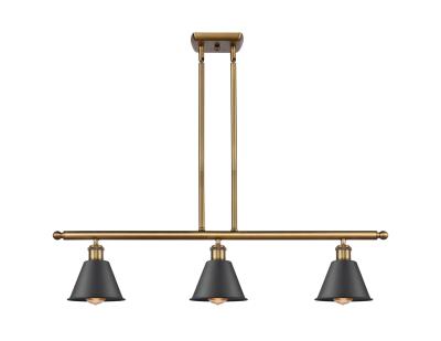 INNOVATIONS LIGHTING 516-3I-BB-M8 BALLSTON SMITHFIELD 36 INCH THREE LIGHT ISLAND LIGHT, BRUSHED BRASS, INCANDESCENT
